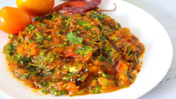 বেগুন-টমেটোর ভর্তা তৈরির সহজ রেসিপি